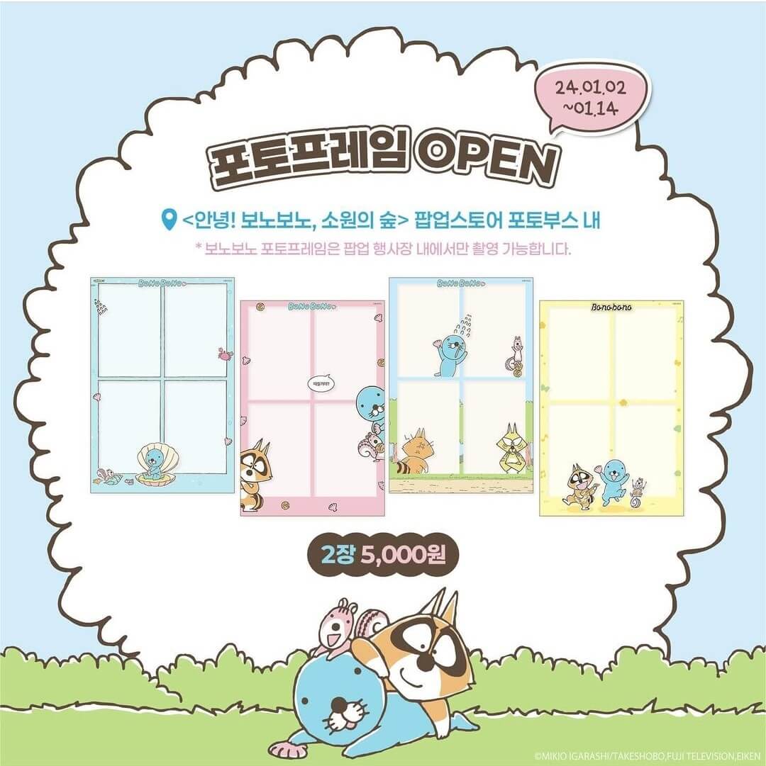 보노보노 팝업스토어 내 포토프레임이 준비되어 있습니다. 이 프레임들은 보노보노 팝업스토어에서만 기간한정으로 만날 수 있으니 관심 있으신 분들은 팝업스토어 운영 기간 내에 방문하셔서 사진을 찍어보시기 바랍니다.