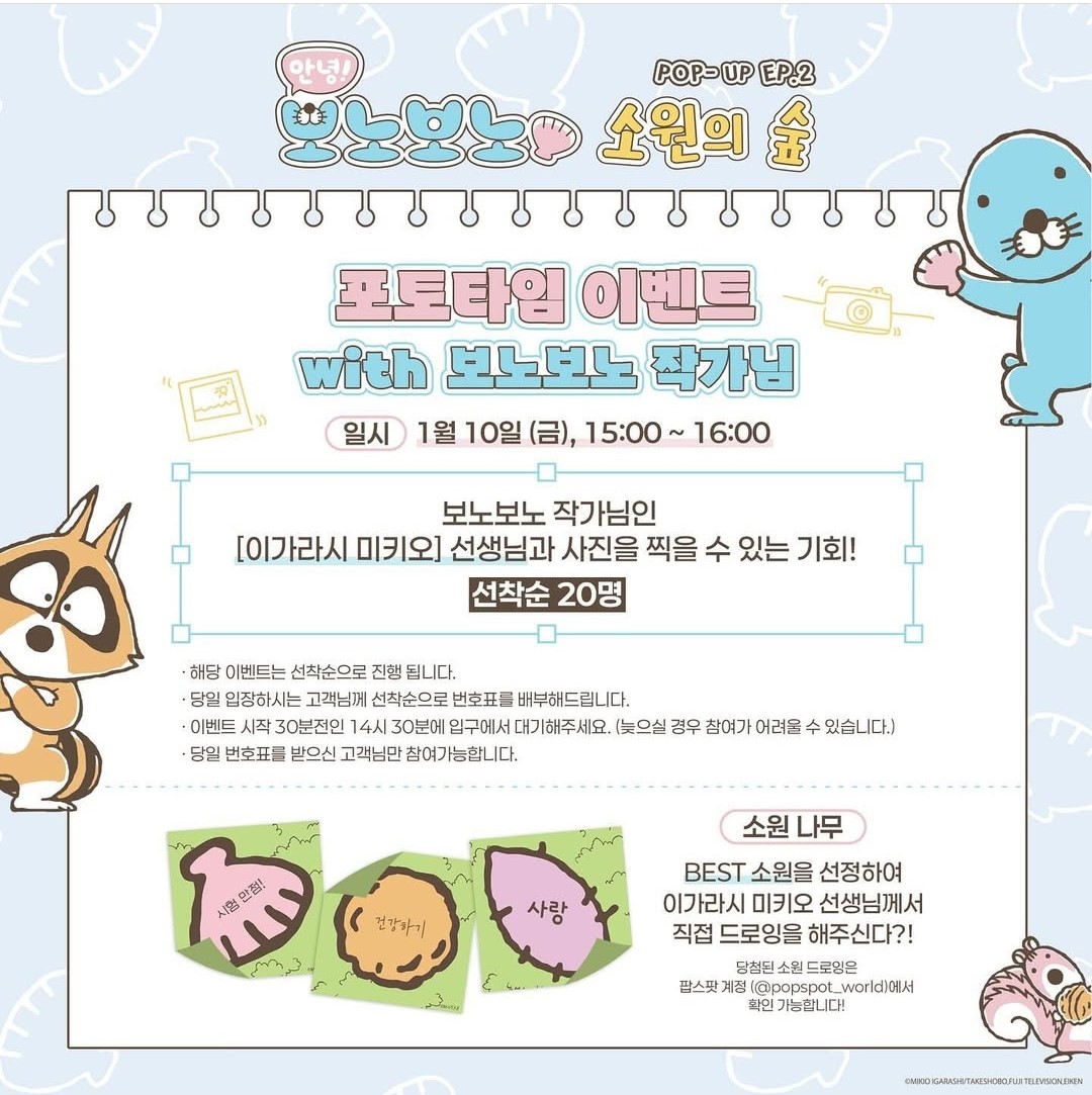 보노보노 팝업스토어 포토타임 이벤트 with 보노보노 작가님