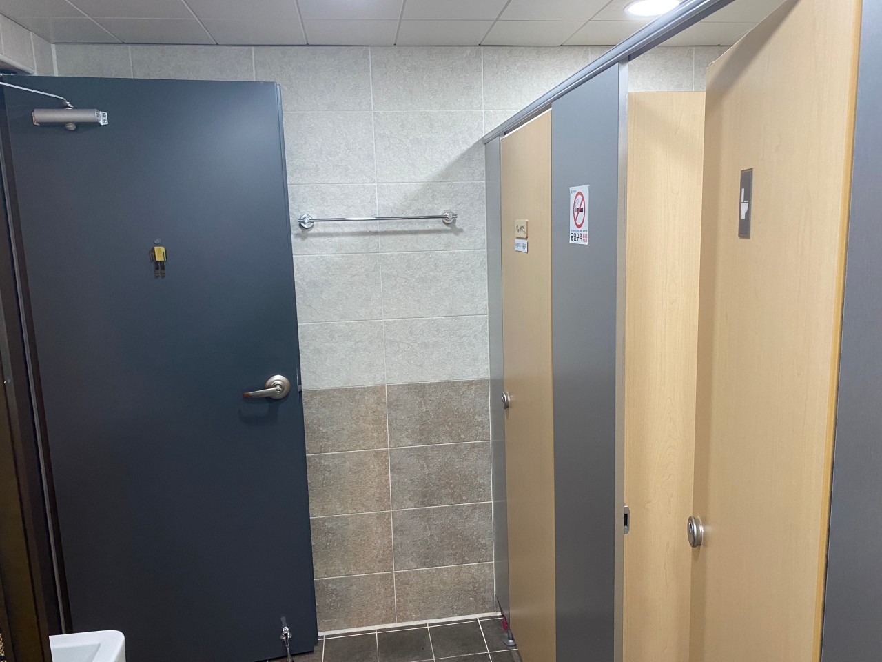 샤워실은 공용 샤워실과 여성 1인 샤워장이 운영됩니다. 남성의 경우 공용 샤워실만 있으나 여성의 경우 공용 샤워실과 1인 샤워장이 있습니다.