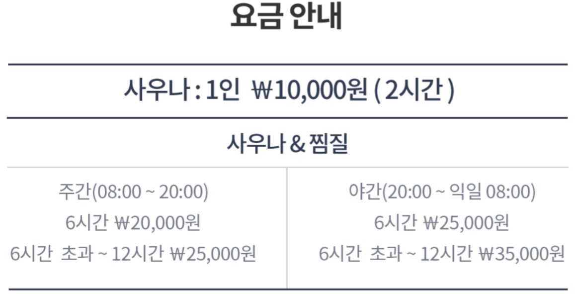 - 찜질시설 중 편백은 24시간 / 황토방은 05:00~22:00 운영합니다.