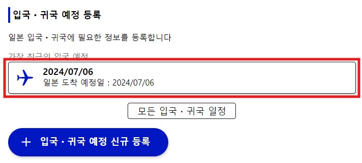 마지막으로 홈 화면에서 등록된 일정을 클릭하여 세관 관련 물품, 반입금지 물품 등을 확인하는 과정을 마치면 등록이 완료됩니다.