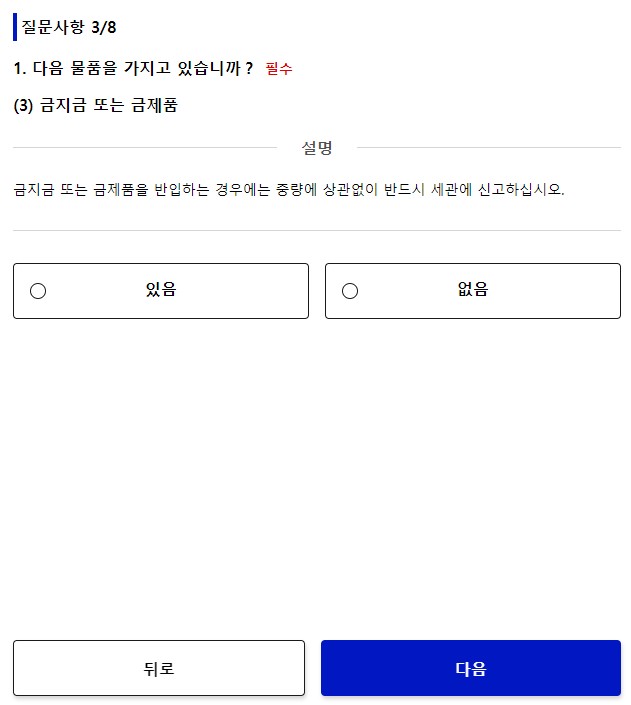 세관 관련, 반입금지 물품 관련 질문입니다. 각 내용 확인하셔서 체크 진행하시며 되겠습니다.