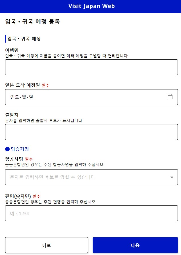 1. 도착 예정일, 출발지, 항공편 정보 작성