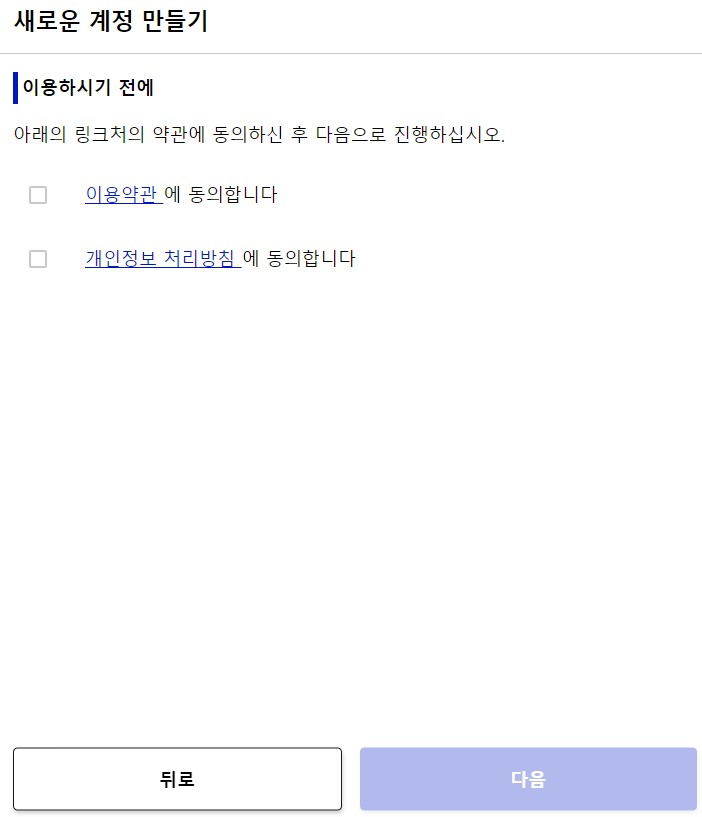 로그인 화면에서 계정이 있으신 분들은 로그인을 진행하시고 계정이 없으신 분들은 새로운 계정 만들기를 클릭하시면 됩니다.