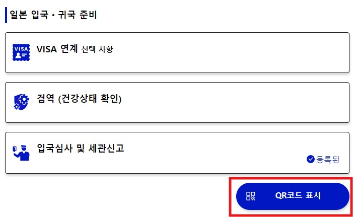 입국 신고서 작성 완료하면 QR 코드가 발급됩니다. 발급 정보를 미리 저장해 두고 출국하시는 것을 추천드리며, QR코드 표시를 클릭하면 나오는 코드를 캡처하시면 됩니다.
