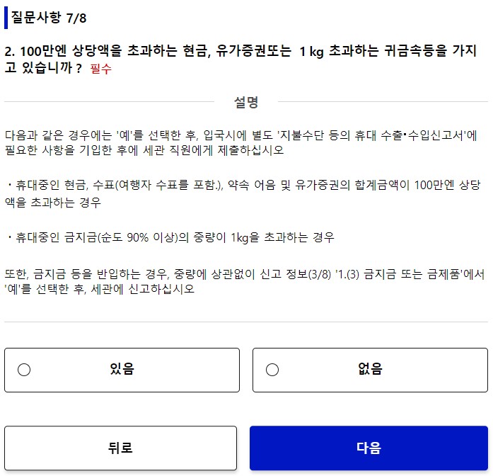2. 면세 수속 이용확인의 경우 해당하시는 분들은 있음으로 클릭 후 다음으로 넘어가시면 됩니다.